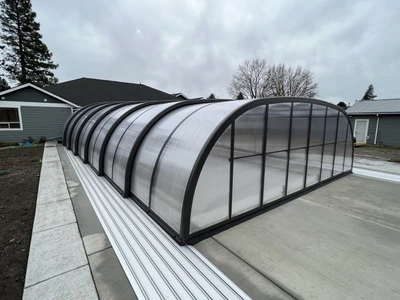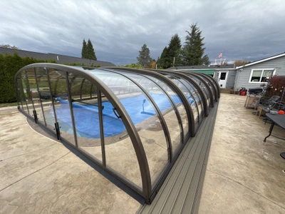 Mrs. Jennifer was looking for a way to protect her pool, extend the swimming season, and save time on maintenance. With the Laguna enclosure, she got not only a practical solution but also an elegant addition to her backyard that perfectly blends in with the surroundings.