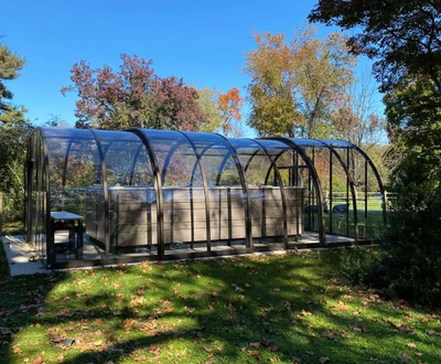 Browse our photo gallery of ALUKOV enclosures for inspiration on covering pools, patios, hot tubs, or carports. Our products combine elegant design with functionality, allowing you to use outdoor spaces year-round and enhancing your home's comfort. Discover a wide range of models and find the solution that best fits your needs.