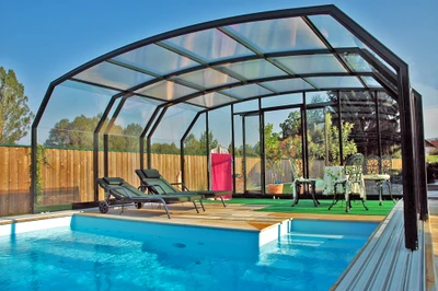 Browse our photo gallery of ALUKOV enclosures for inspiration on covering pools, patios, hot tubs, or carports. Our products combine elegant design with functionality, allowing you to use outdoor spaces year-round and enhancing your home's comfort. Discover a wide range of models and find the solution that best fits your needs.
