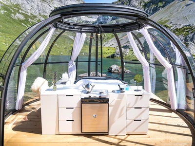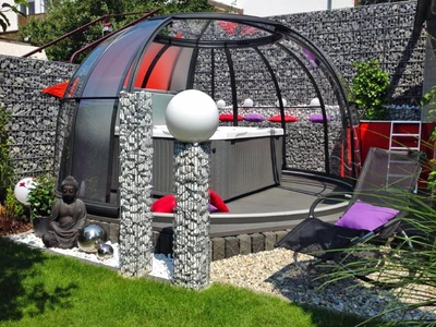 With a hot tub enclosure, you can enjoy uninterrupted relaxation even in rain, snow, or strong wind. At the same time, you'll gain more privacy and extend the lifespan of the hot tub and its technology. The elegant structures, designed with attention to detail, naturally complement any outdoor space—whether it's a garden next to a family home, a terrace, or a wellness zone.