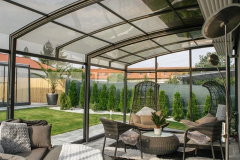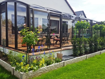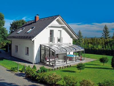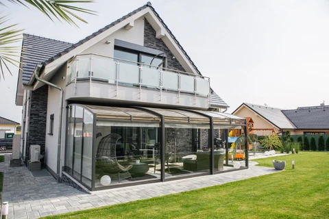 Discover the sliding terrace enclosure CORSO Entry – the ideal solution for year-round use of your terrace or balcony with a polycarbonate roof and aluminum frame.