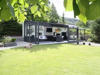CORSO Ultima is a modern enclosure with clean architectural and design lines, featuring straight roof panels and large glazed surfaces that enhance the sense of space and meet the needs of even the most demanding customers.