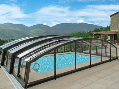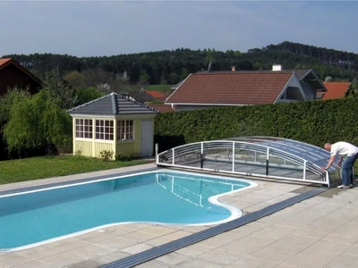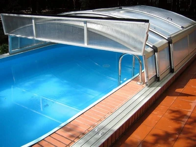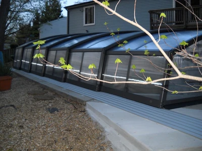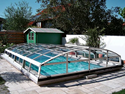 The IMPERIA pool enclosure represents the ideal combination of functionality and elegant design. Its low profile and subtle arch with sharp edges ensure that the enclosure does not obstruct the view of the garden and blends harmoniously into various types of exteriors. This model is designed to keep the pool water warm and clean, thereby extending the swimming season and reducing maintenance needs.