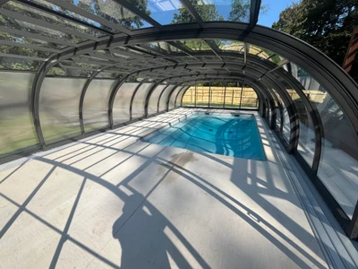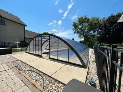 Create a functional, elegant, and weather-resistant outdoor experience that works all year round. Our standard enclosure systems are designed to enhance the value, usability, and efficiency of your pool or swim spa, while also protecting your family and saving you time and money.