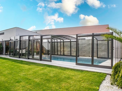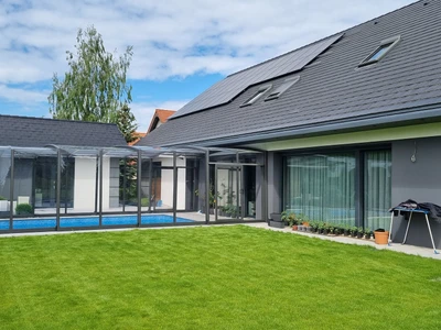 The VISION enclosure is known for its elegant design, which blends perfectly with the surrounding environment. Mrs. Radka appreciated the easy sliding of the segments, which allows for quick and convenient opening of the space above the pool during warm days. This gave her complete freedom in using the pool without the need for constant assembling and disassembling of the enclosure.